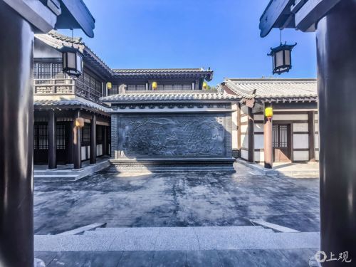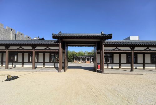 8000多平方米的古装微短剧内外景基地全面建设完成,图为基地正门。